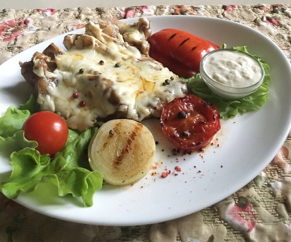Свиные уши, запеченные под сыром в сливочно-чесночном соусе