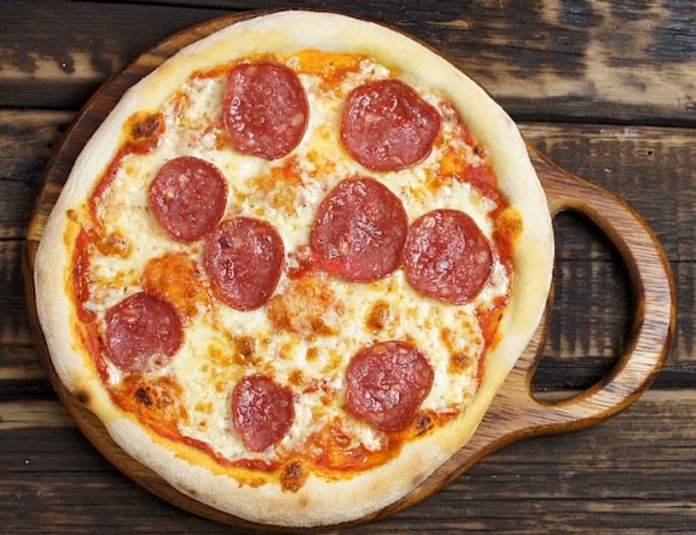 Колбаска х/к, сыр Моцарелла, томатный соус.